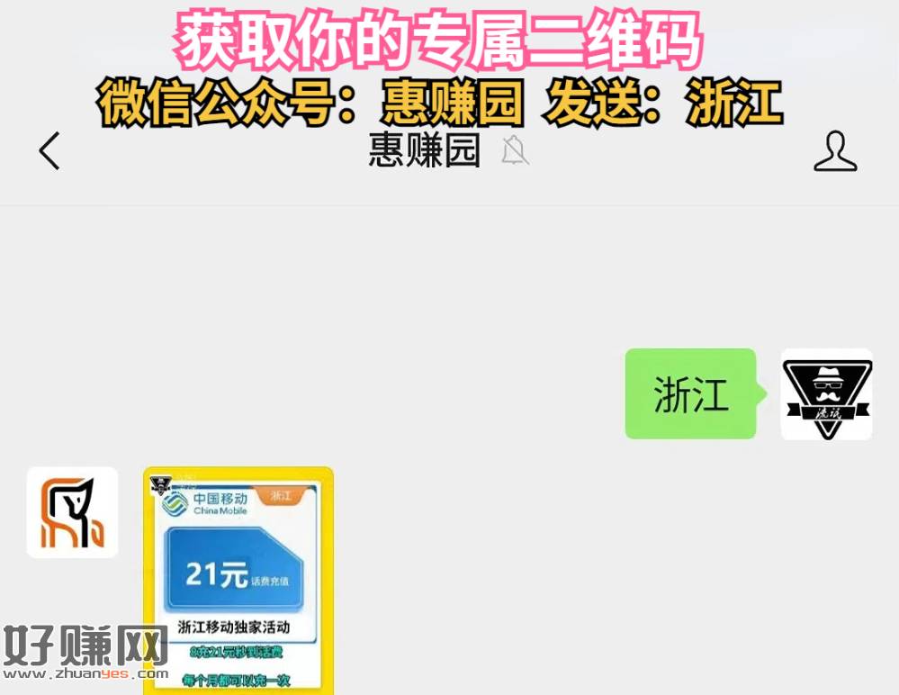 获取你专属二维码,目前8充21元话费,邀请好友充值成功你得6元!邀请无上限10个人就是60元