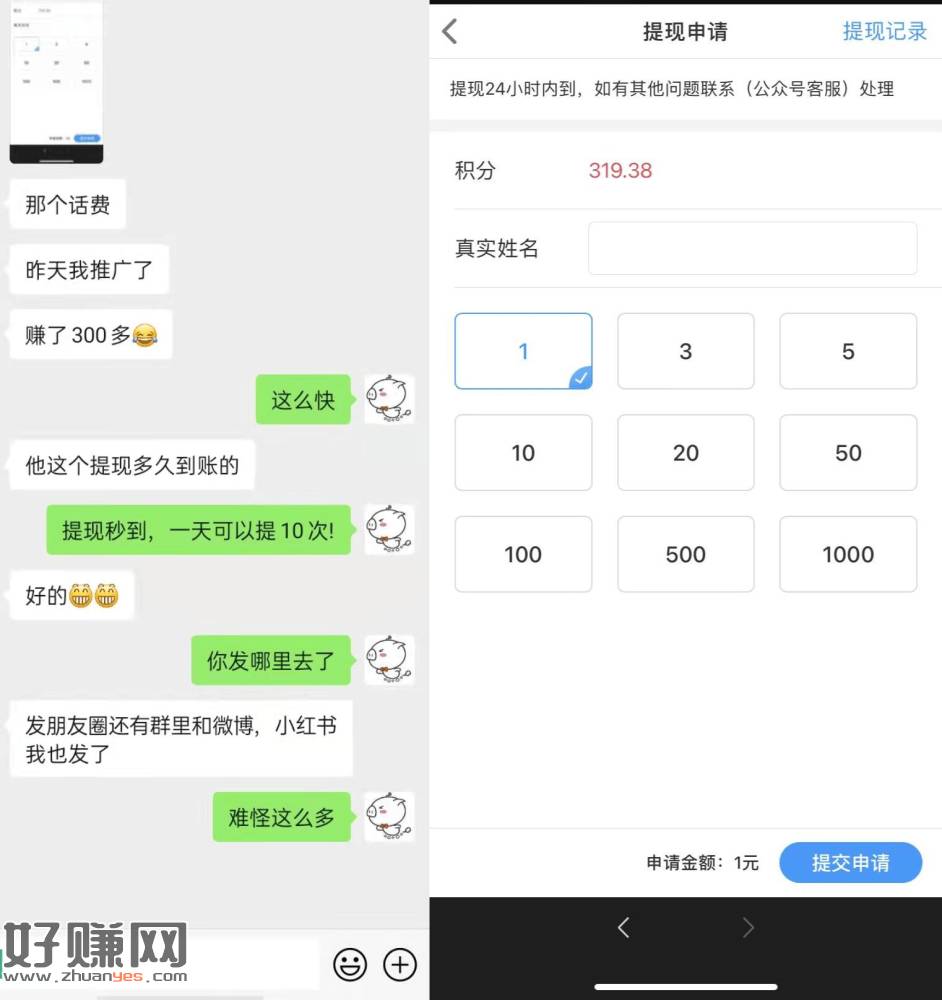8充21元秒到话费,你还得6元现金,速度去推广!随随便便发个朋友圈就能赚几百块
