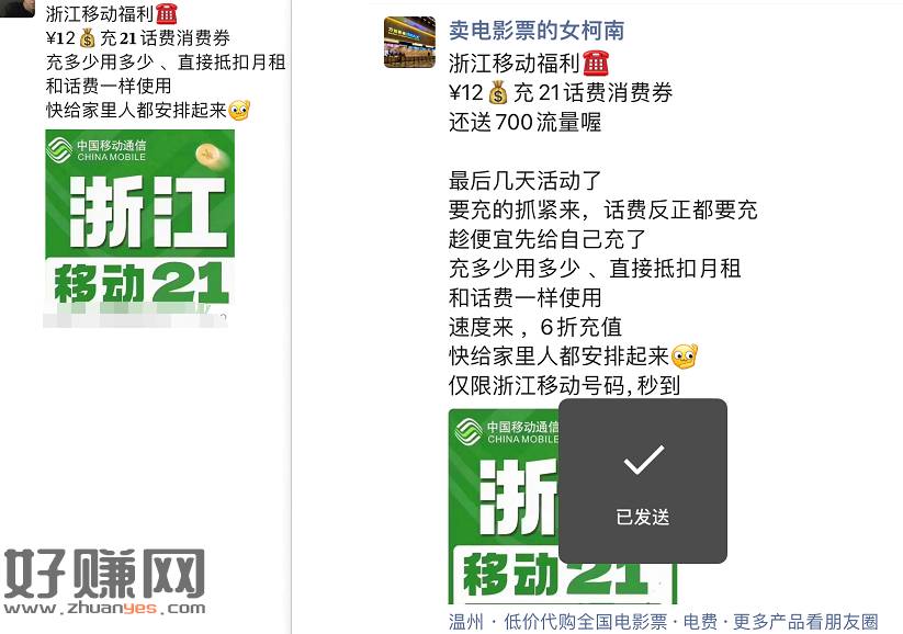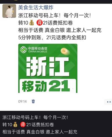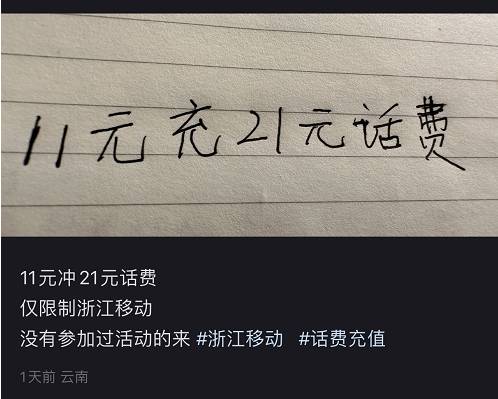 浙江移动超低价充话费可以去推广接单,我看很多人在咸鱼,小红书,朋友圈,微博等等各种渠道去接单赚钱!