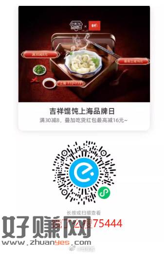 【吉祥馄饨】图二领取30-8叠加会员有30-16,还可以叠加店铺满减30-12,几块钱就行,限制上海门店