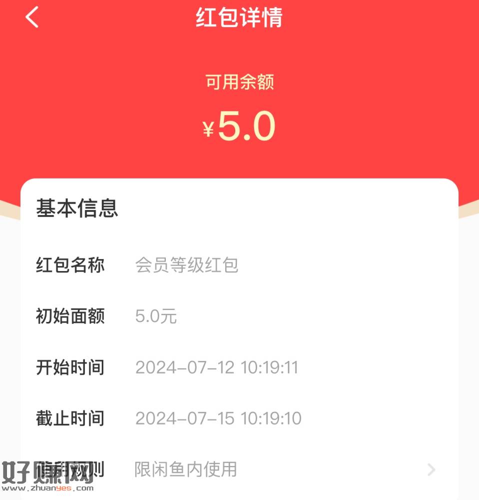 闲鱼成长等级红包有了,应该是X5以上才有的
