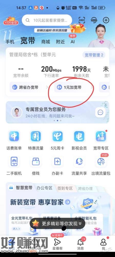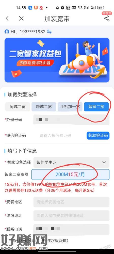 好像必须是100多的融合套餐里面开这个才行。电信app里选宽带,再选1元加宽带,智家二宽,选智能学生证,可以开第二条200M的宽带。但是注意这个合约有三年。会要收100块钱的安装费,预充180块钱,分36个月返还。还可以去领一个智能学生卡,我拿来给小仔当电话手表用了。
