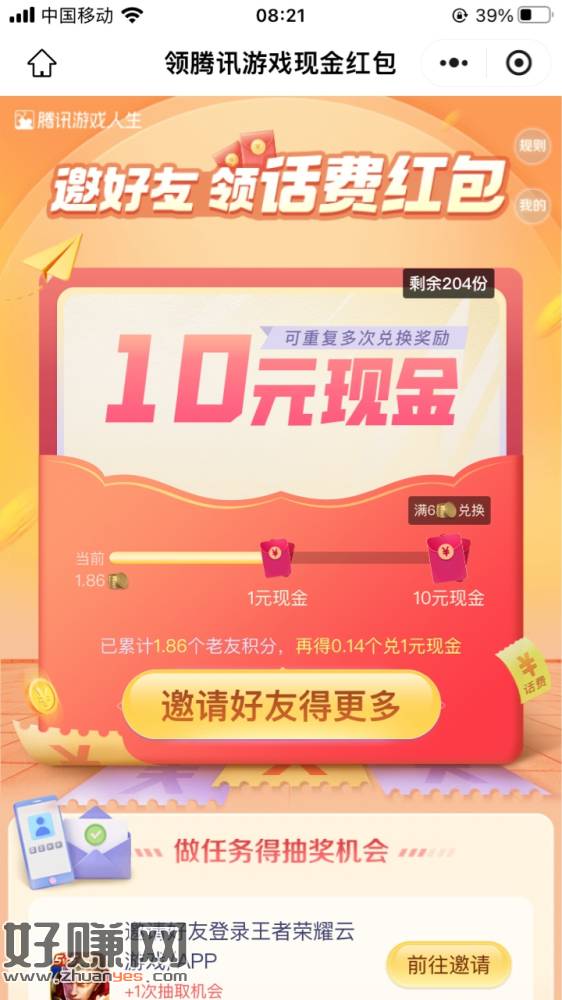 提醒贴,腾讯游戏人生10元补包了,刚领取,没兑换的可以去兑换,还有204份,