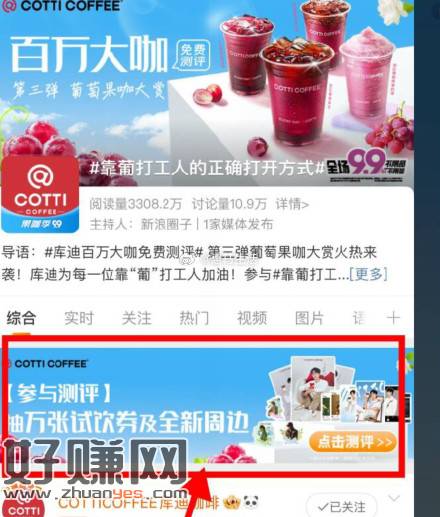 【微博抽库迪咖啡一万张免单券】微博打开地址->点击话题进入->简单转发得3次机会,只有中免单券才有用