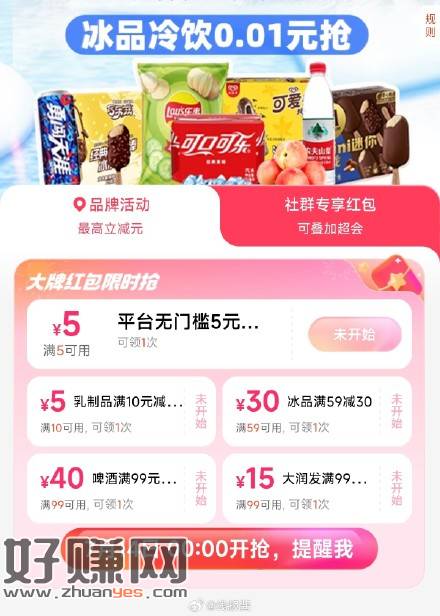 0点页面券全领,有张无门槛5元红包限量的