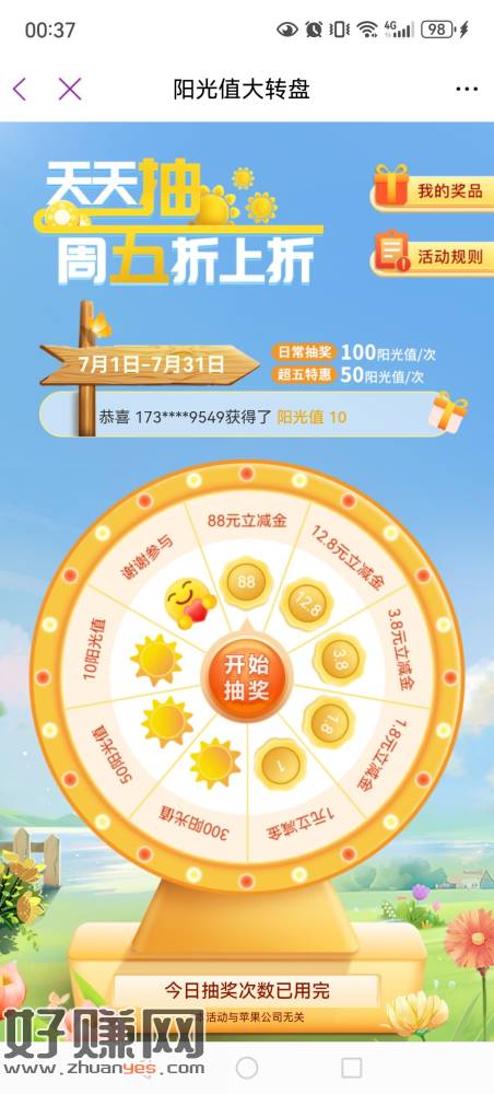 光大抽奖,老子虽然中奖了但一点也不开心!因为我始终坚信[ 在绝