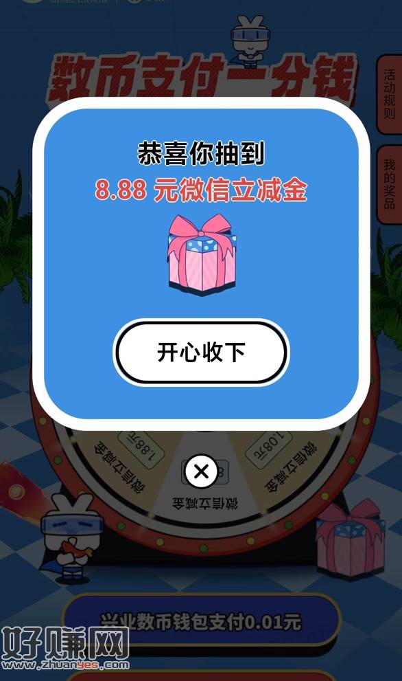定南京 兴业数币支付一分钱抽 换v提示同实名的话就是抽到同样金额