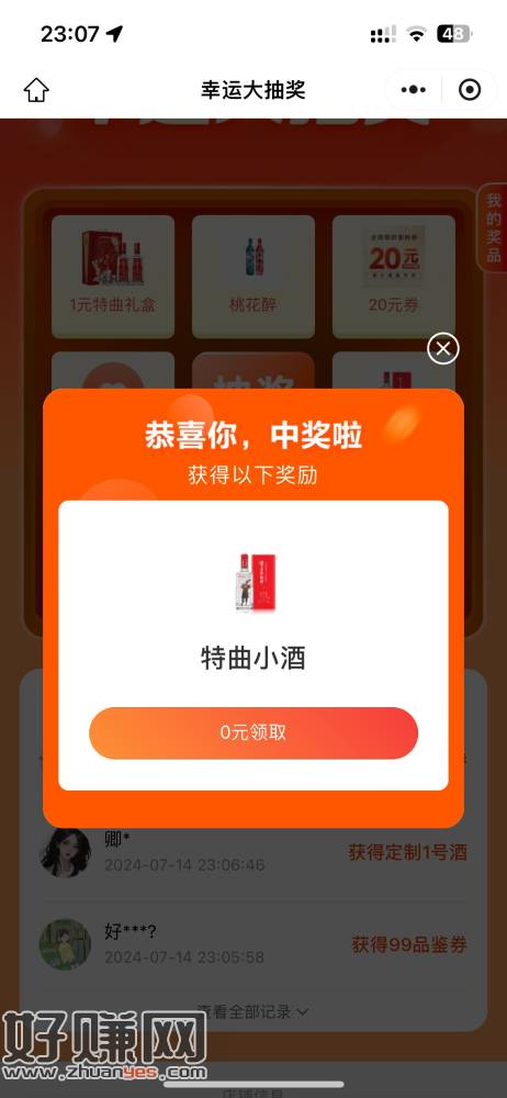 微信打开抽酒(不必中)
