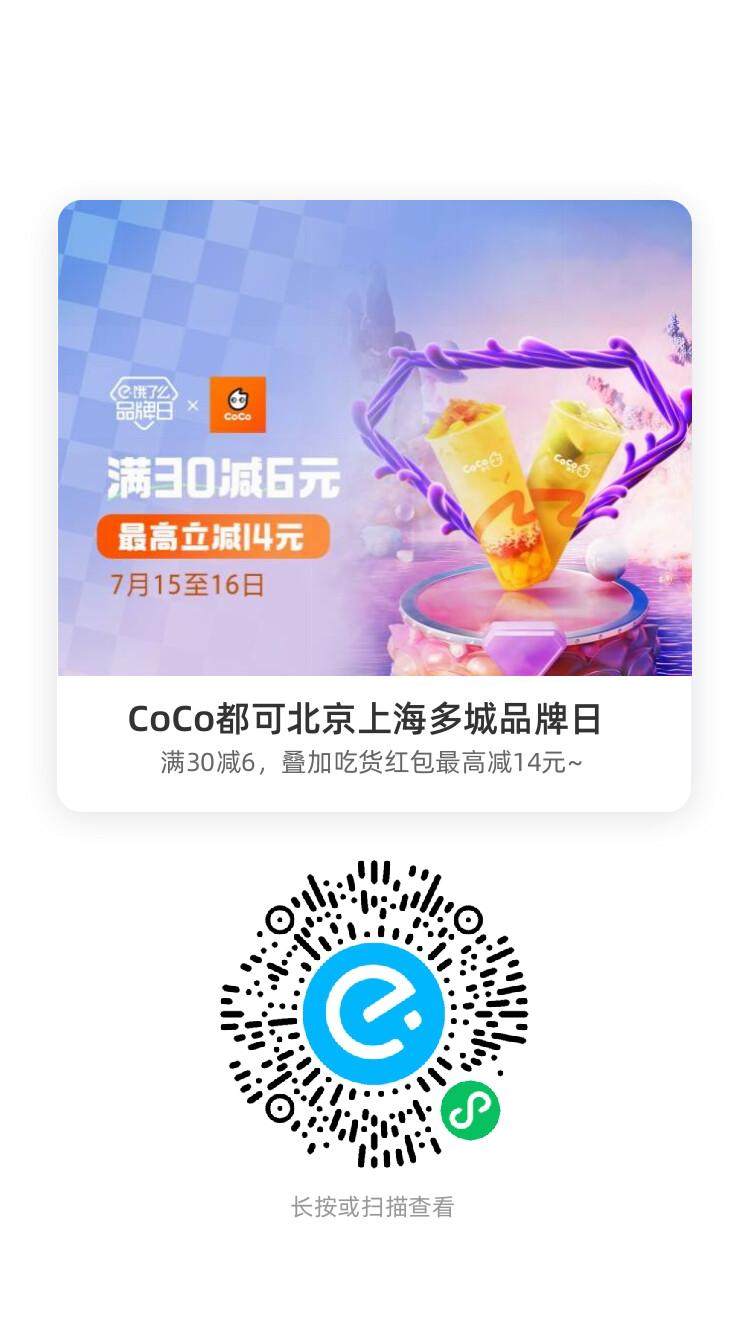 【coco】30-6,叠加会员有30-14,限制北京上海等城市