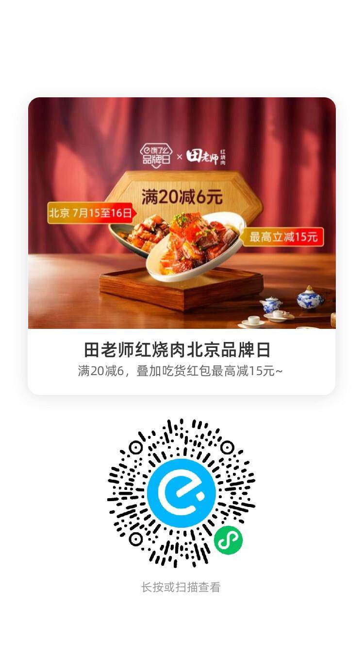 【田老师红烧肉】20-6,叠加会员有20-15,限制北京地区