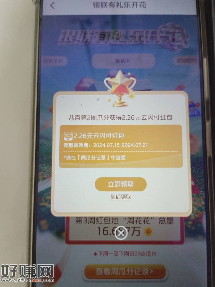 云闪付有礼乐开花!!我发帖,你们就当没看见,因为参与的人越少