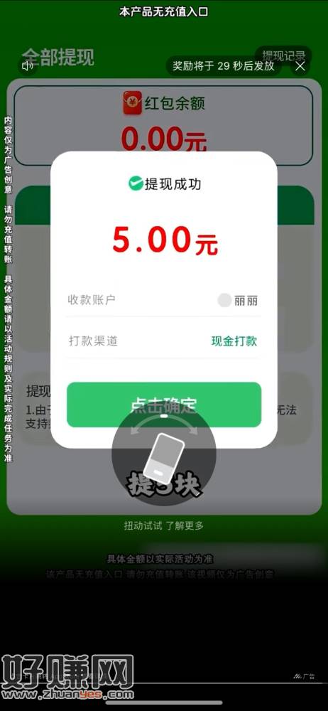 上号领第一个红包应该是2+ 不够就看视频凑够2块 然后提现会让你看视频 视频有x(图4这种能直接关闭的)或者能返回的就直接关闭别看
