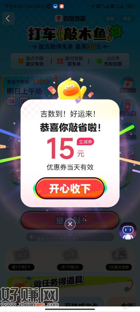 百度地图搜【打车敲木鱼】 敲30下