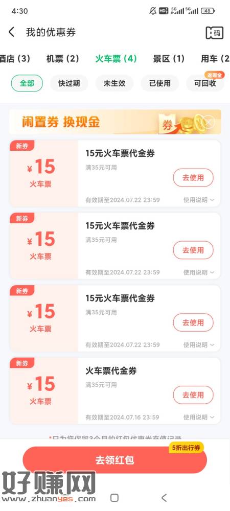 免费领同程金卡跟35-15火车票券