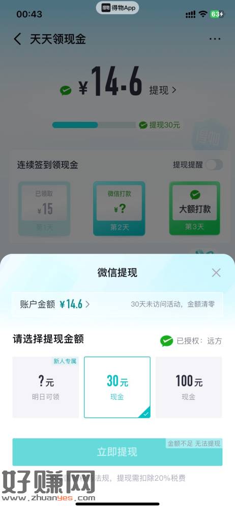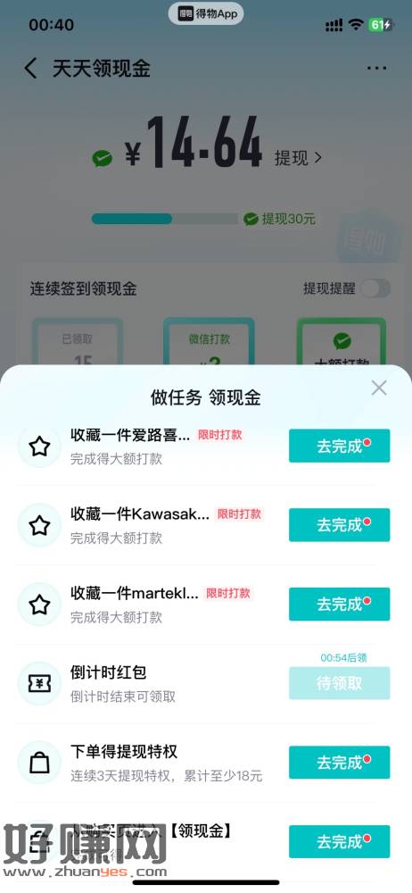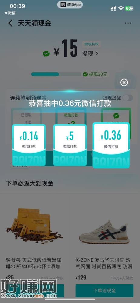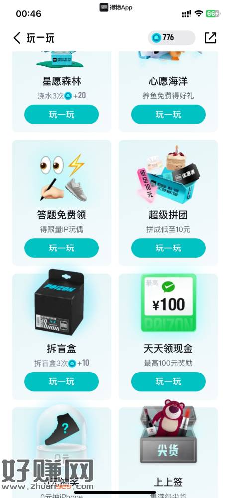 得物天天领现金活动,应该是新号有,我老号没有,探索玩一玩里面
