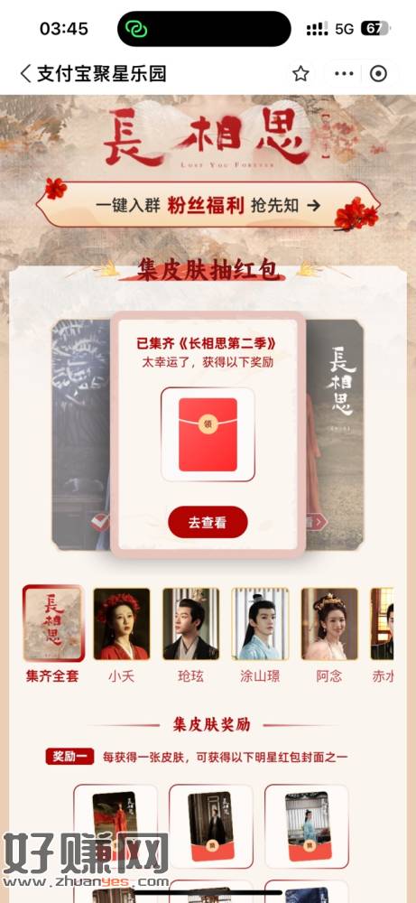 支付宝搜索 长相思第二季 做任务 刚中3.78