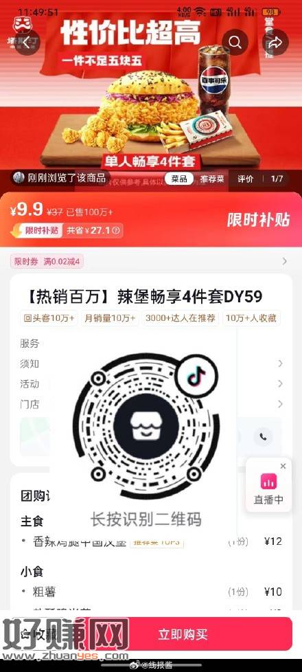 dy今天塔斯汀四件套部分人5.9或者9.9,不对就忽略