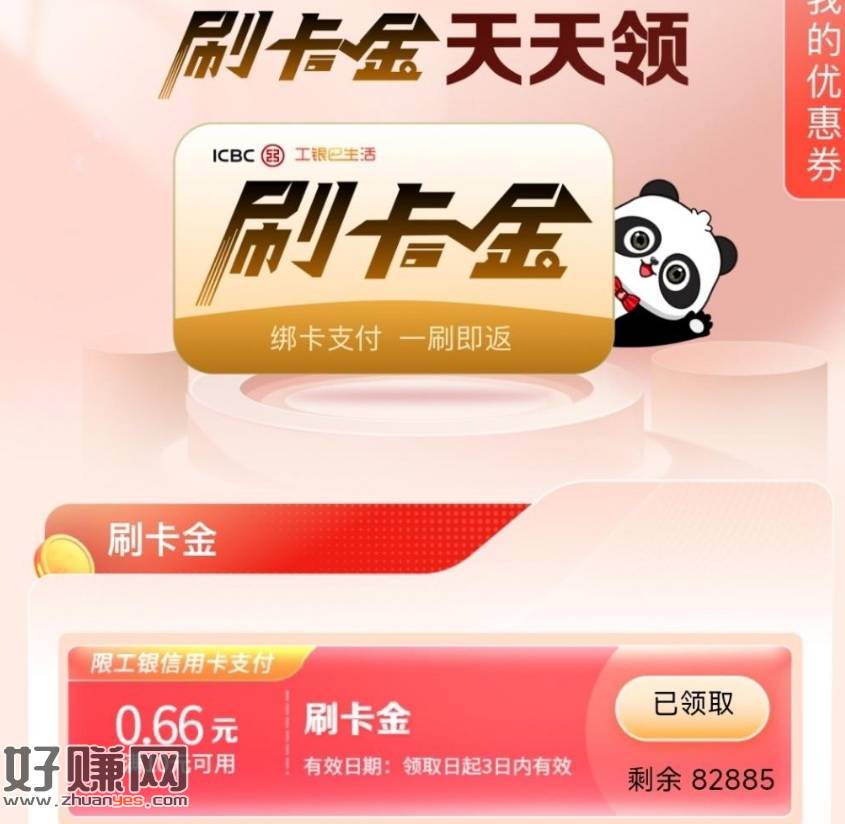 工行信用卡:工银e生活APP,搜索“美好生活礼”,每天领0.