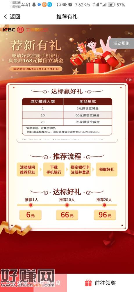 工行搜邀请有礼,邀请老用户就可以了,已经拉满速度冲,都是邀请