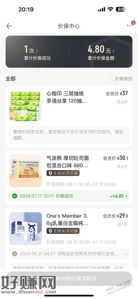 鸡蛋券买的面包价保了,秒到