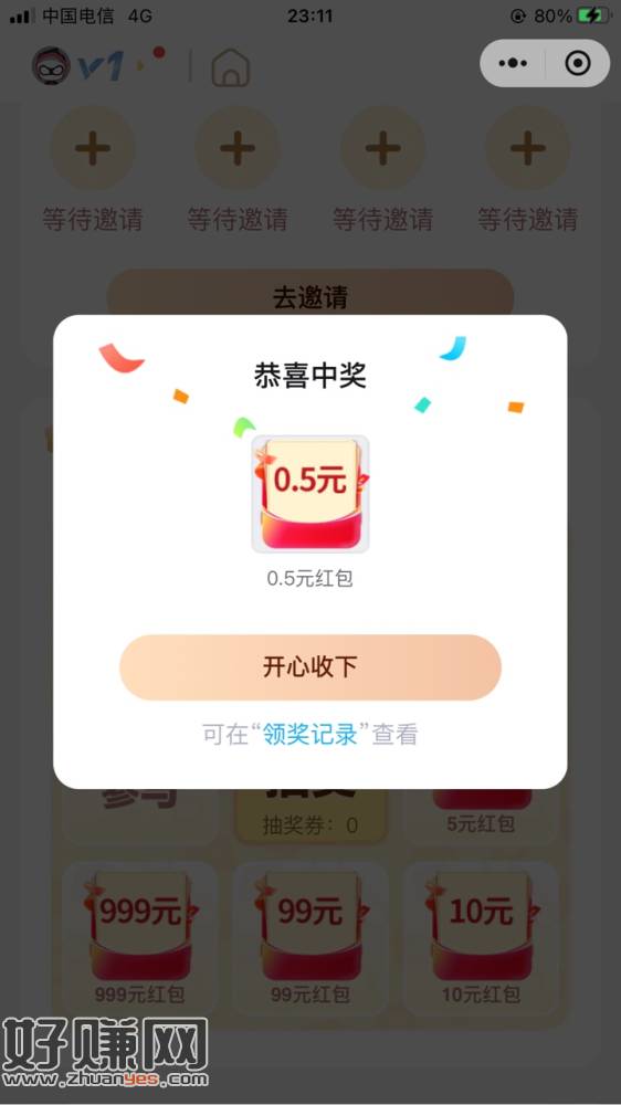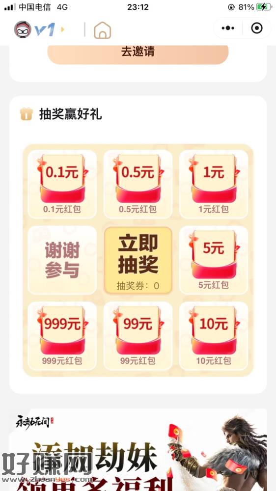 前5000人必中,入口有头擦掉就行,自己拉小号,小号点抽奖,就会显示邀请了