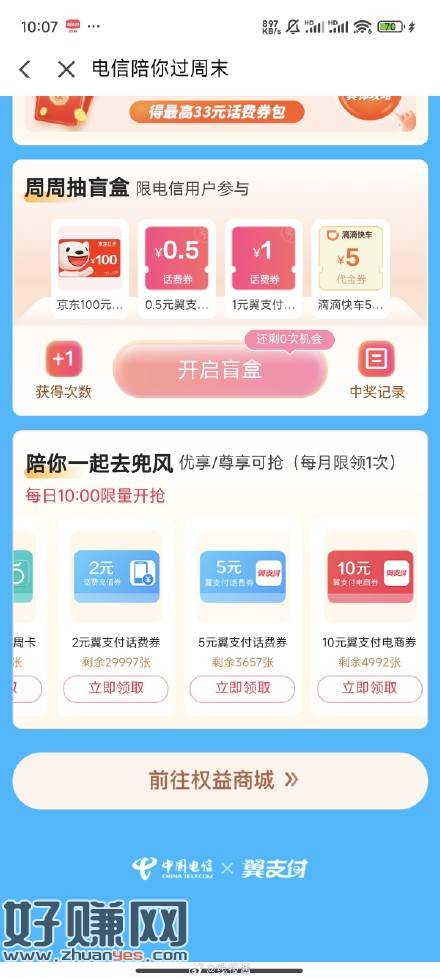 翼支付-杈益商城-陪你过周末-下拉5元话费