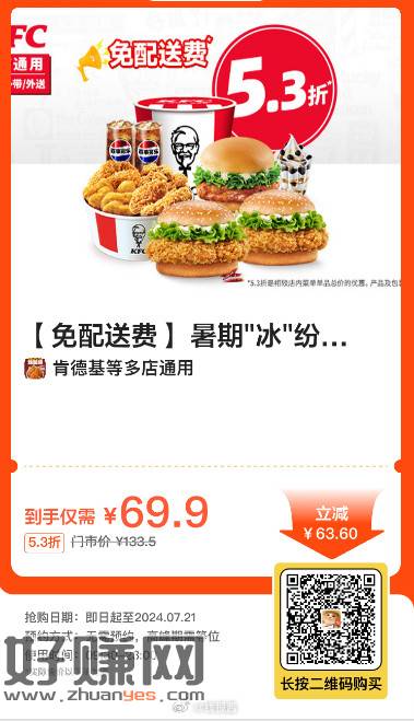 63.9,肯德基|【免配送费】 暑期"冰"纷三人餐