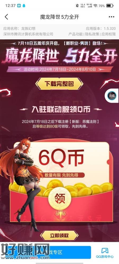 qq游戏龙族新户6qb,映像中游戏挺大的,想玩的去