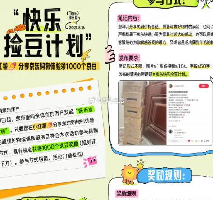 【京东捡豆计划每周领1000京豆】京东打开活动->根据提示到小红书带话题发笔记->提交审核可领1000京豆,每周可参与1次