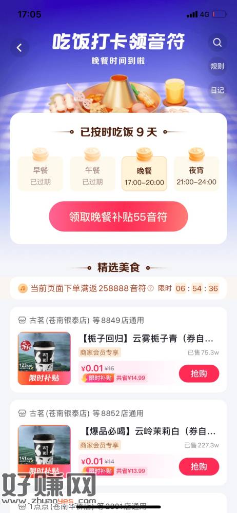 抖音极速版,吃饭打卡领音符,看看有没有下单领音符,我是进去十