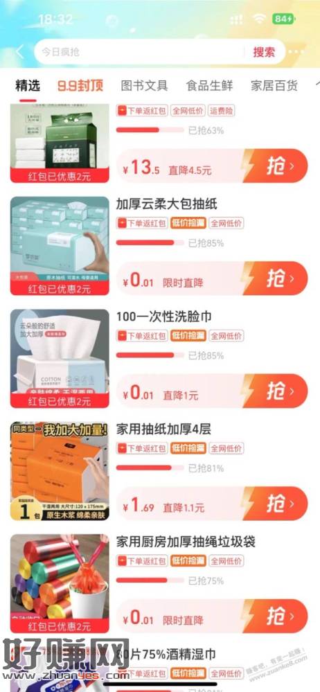 zfb搜索天天秒杀,横幅进去领取弹窗红包,下滑很多0.01