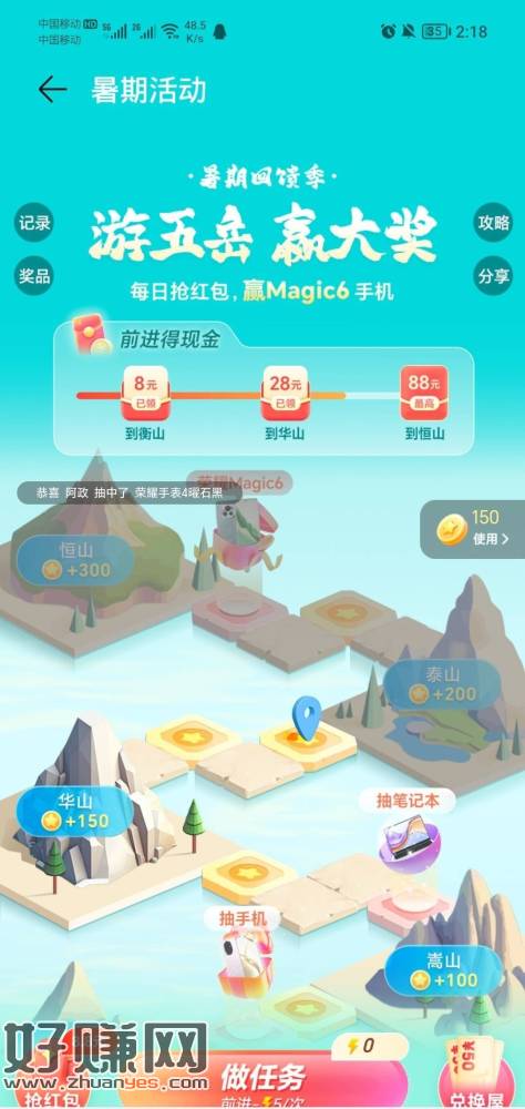 荣耀应用商城暑期回馈季游五岳赢大奖活动