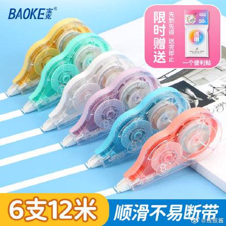 宝克 修正带 12米*6支 ,6.9元包邮,送便利贴1个