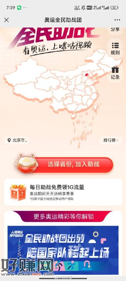 移动咪咕流量每天1g