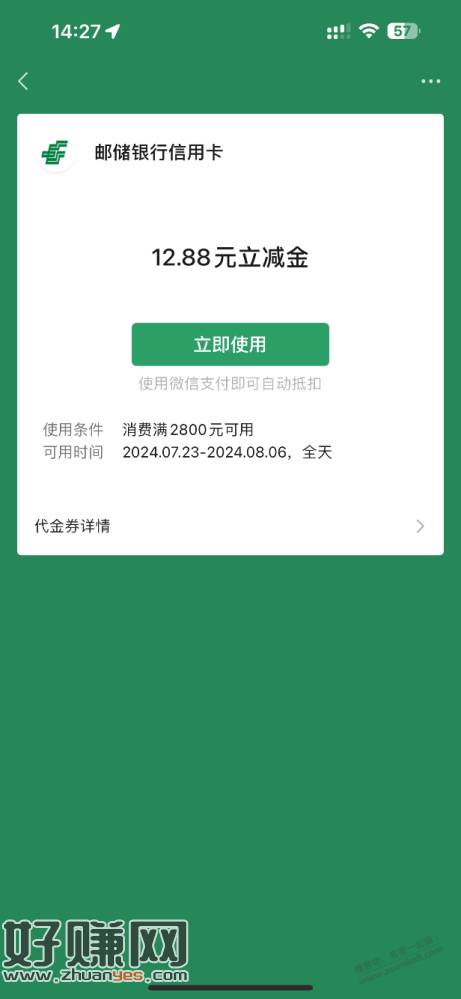 邮储xyk送了12.88立减金,快去看看,有的加果