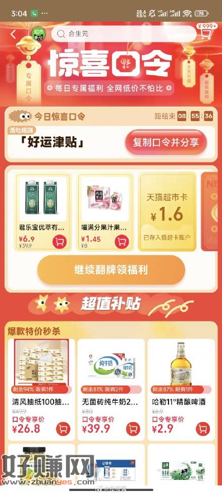 猫超右下角惊喜口令试试,好运津贴