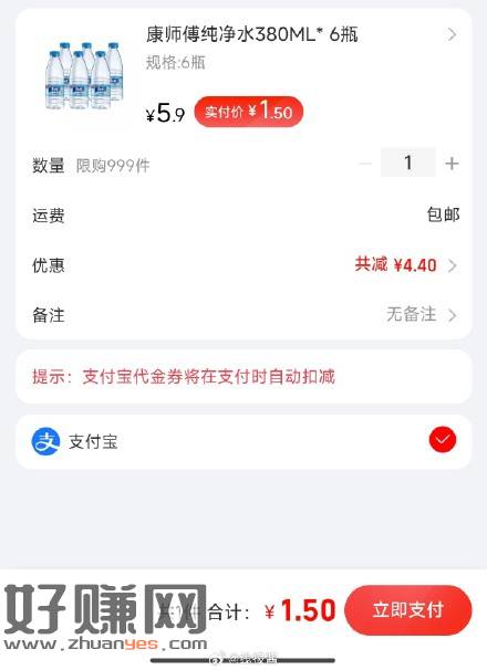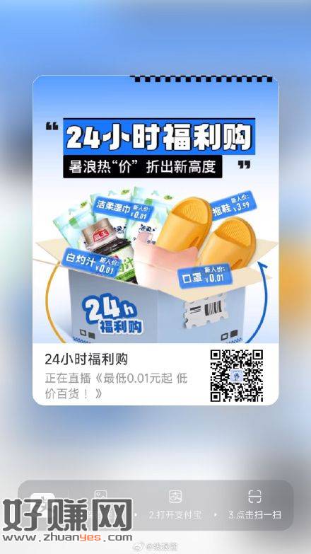 支付宝扫,直播间右上角抽完,直播间有款水提交1.5,付款抵扣后是0元