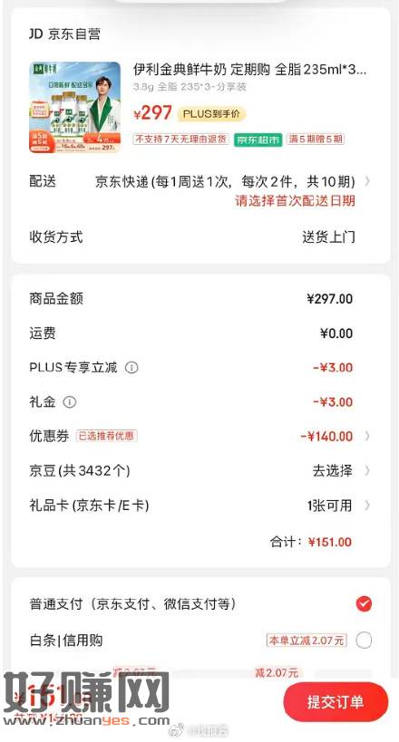 商品下领取140券,买五期送五期,到手151元60瓶,折2.5一瓶