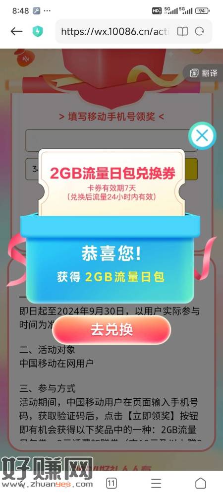 【2024 福利大派送】即日起至 7 月 31 日,中国移动用户在活动页面输入手机号,点击「立即领奖」按钮即有机会获得流量/话费券随机奖品。
