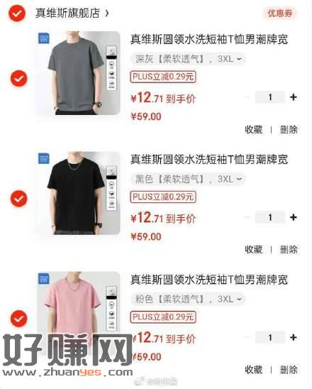 任选3件39元,真维斯 圆领纯色短袖T恤