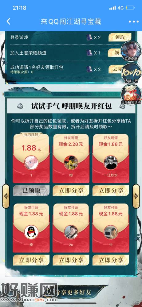 qq游戏中心搜索王者荣耀 横幅领红包 老号必中 多号发财