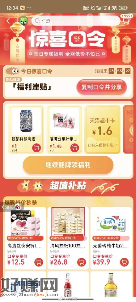 猫超右下角惊喜口令试试【福利津贴】