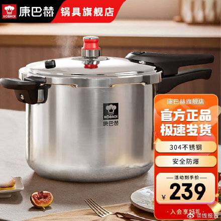 159,康巴赫 304不锈钢 小红帽快煮高压锅