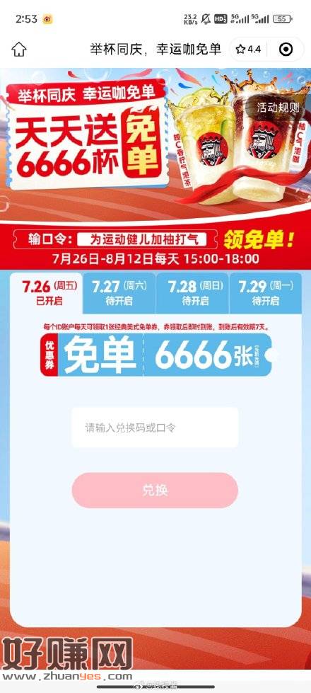 7.26-8.12,每日15点,幸运咖免单,口令: