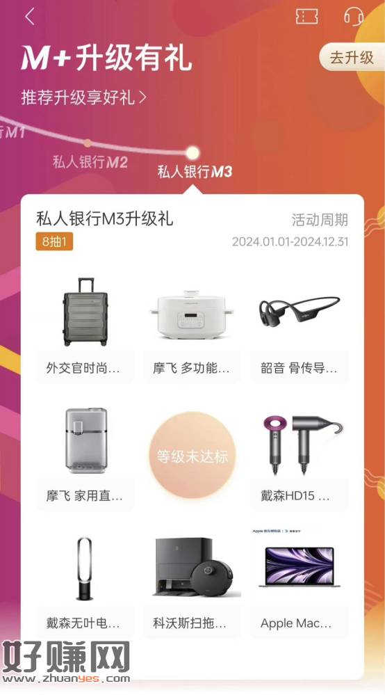招行点我的进去M+活动,升级到M3可以抽千元实物
