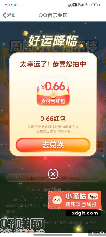 工行APP搜【QQ】再点【功能】点【QQ音乐】,横幅【周周好礼抽不停】,每周都可以抽奖1次,非必中,搜索QQ要大写字母再点“功能”才能搜到
