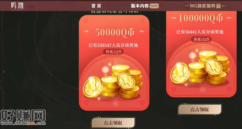 鸣潮wegame 上次做过领20q币活动的,大小号现在可以领2q币