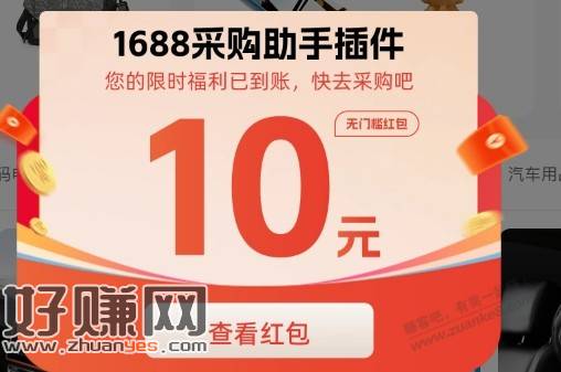 1、打开1688网站、弹出安装插件提醒,安装完成之后,回到首页刷新等待领取红包