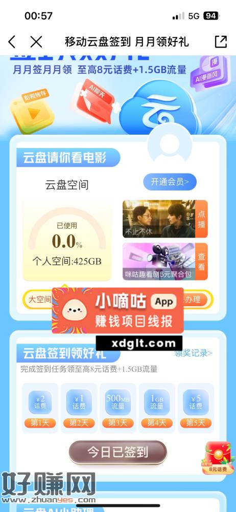 移动app 最下面2个活动,签到送5➕8话费还有流量,新一月又可以开始啦