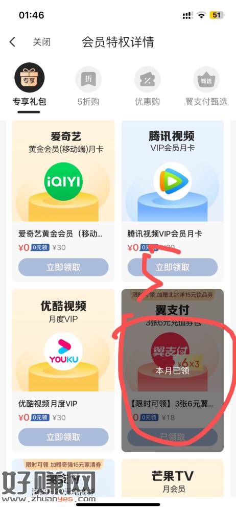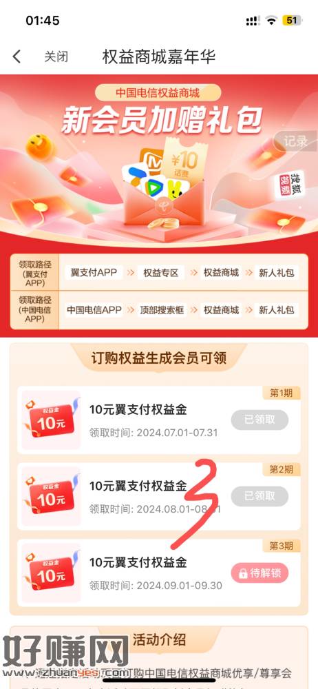 翼支付:上个月开了14.9会员权益的,看图领!!!12冲40